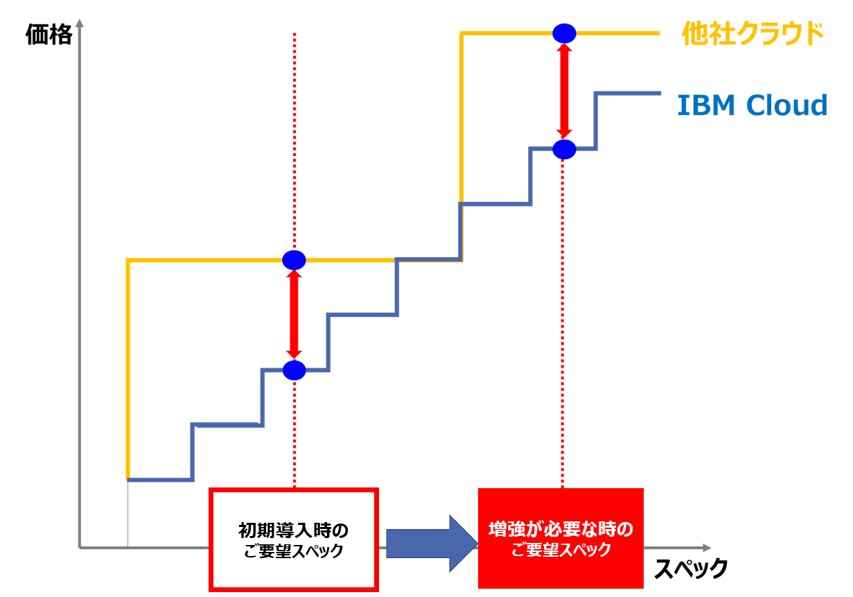 データベースのクラウド(IaaS)移行を進めようとしたB社。一般的な共用型の仮想サーバ・サービスに移行すると、データベースのソフトウェアライセンスが現状よりもかなり高額になることが判明。1社専用型で物理サーバが提供されるIBM Cloudであれば、オンプレミスのサーバと同じライセンス費用で移行できることが分かり、コスト増を回避してクラウド移行することができました。