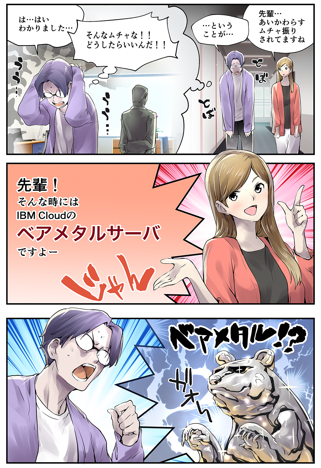 IBM Cloud ベアメタル・サーバは、物理サーバをクラウド環境に設置することができ、オンプレミス環境と同等の環境を構築することができます。オンプレミス環境から一般的なクラウドに移行する際には、アプリケーションの改修コストが発生する場合があります。しかし、IBM Cloudベアメタル・サーバを利用すると、オンプレミス上に構築したアプリケーションをそのままクラウド環境で利用することができますので、クラウド環境への移行が簡単に行えます。